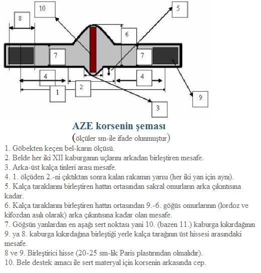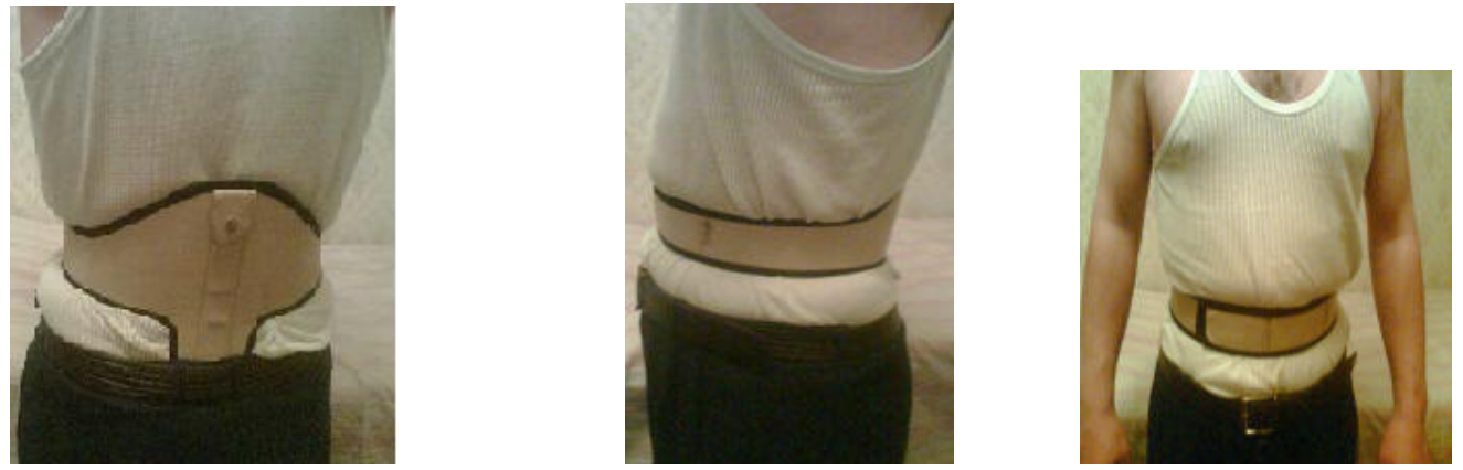 Мы изучали боле 40 типа корсетов предложенных до сих пор для поясничных недугов и предлагали принципиально отличающийся от них ''AZE korset''. В течении 14 лет применили у более 1250 больных грыжей межпозвонковых дисков и после мануалной терапии.